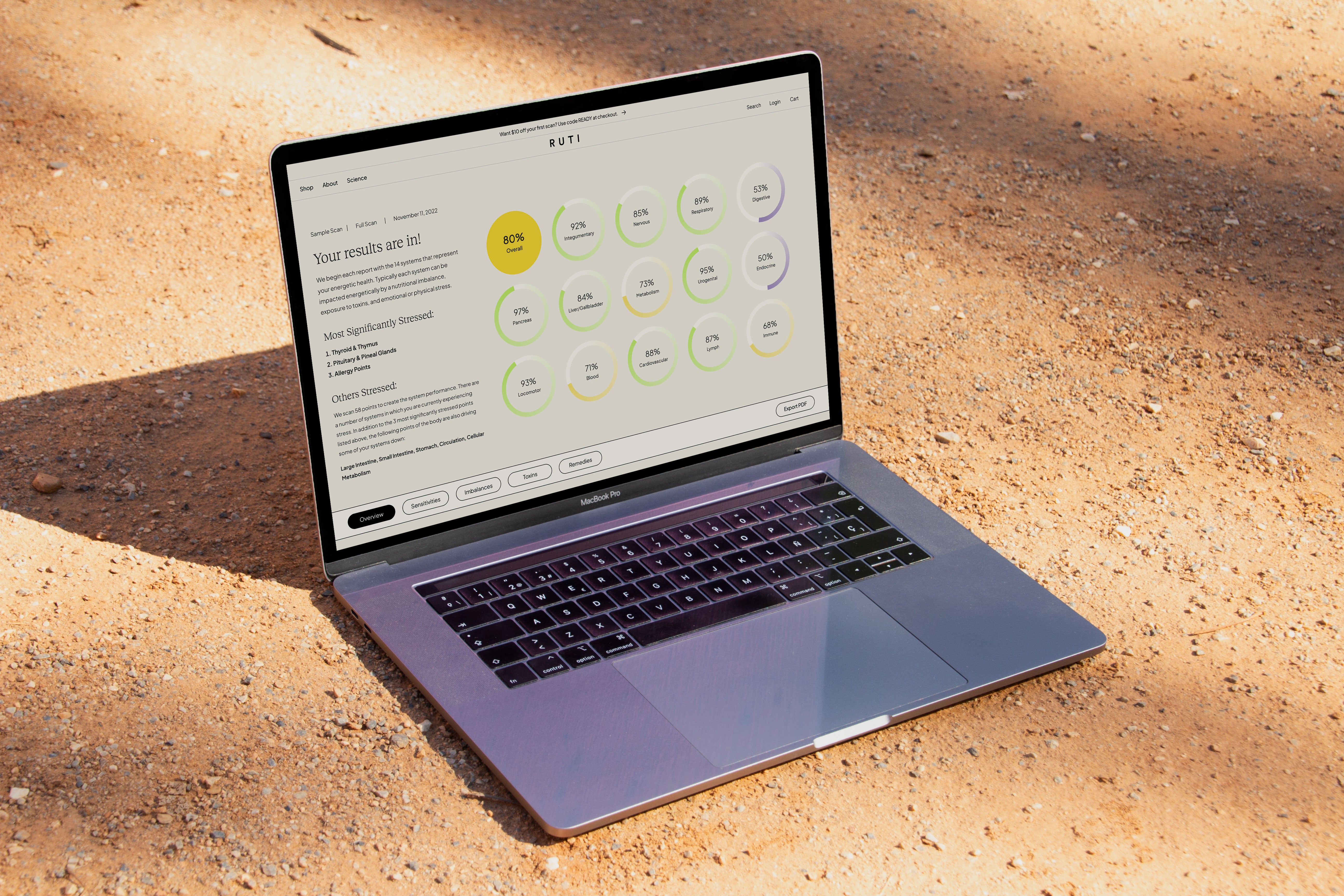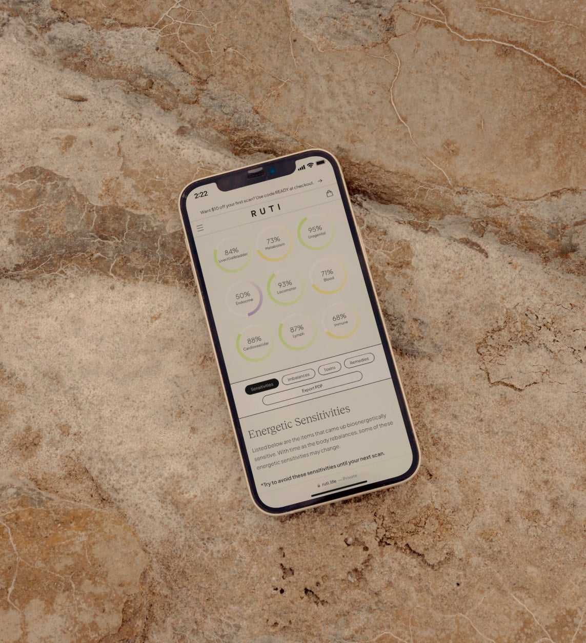 The Ruti Scan measures and analyzes thousands of datapoints from your hair and saliva samples to help understand where your body is out of balance, and why. We then generate a list of holistic remedies tailored to your exact needs.